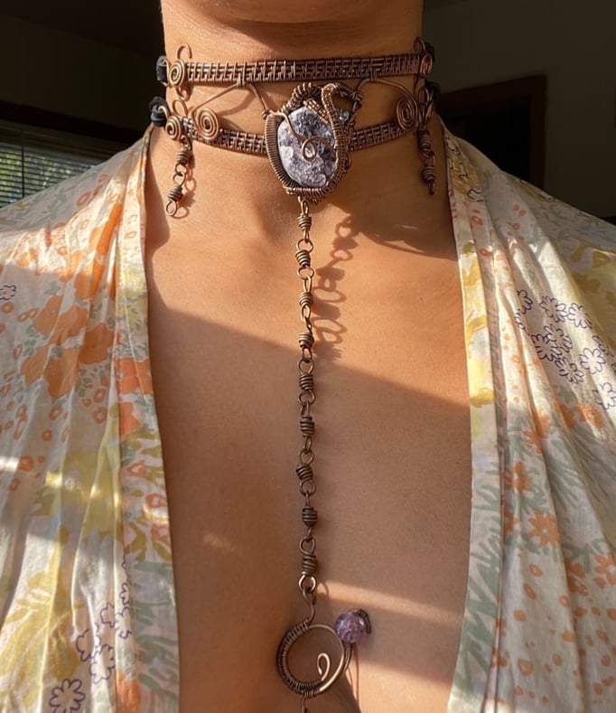 Handcrafted with intention, this copper wire-wrapped choker embodies transformation, grounding, and creative power.